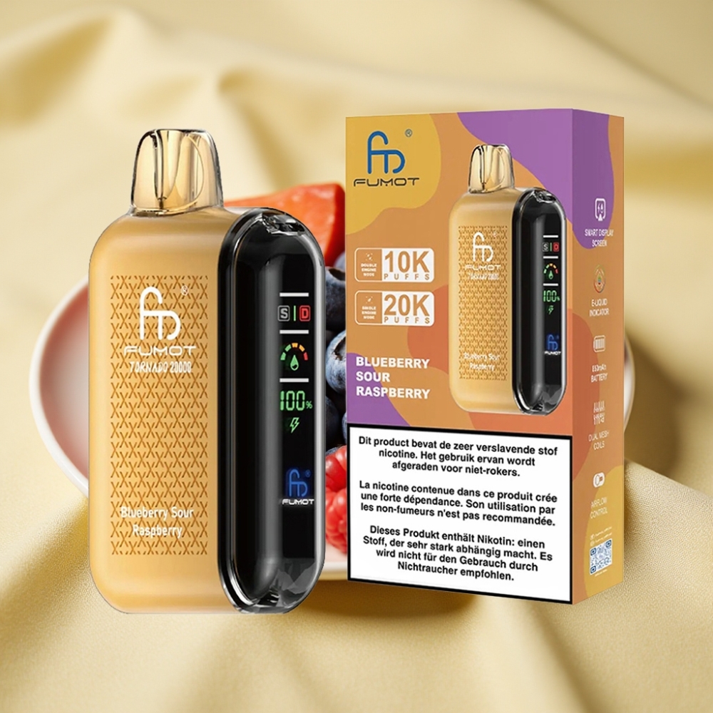 Fumot Tornado 20000 Puff Kékáfonya Savanyú Málna Dual Mesh Coil Smart Display