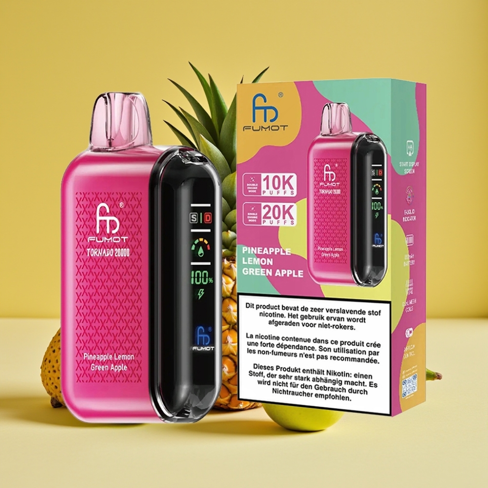 Fumot Tornado 20000 Puffs Ananász Citrom Zöldalma Dual Mesh Coil 20ml Smart Display