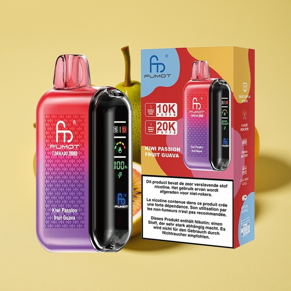 Fumot Tornado 20000 Puffs Kivi Passiógyümölcs Guava Dual Mesh Coil Smart Display