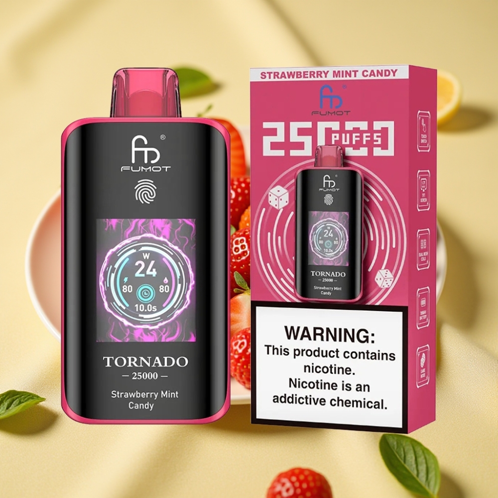 Fumot Tornado 25000 Böf Strawberry Mentolos Cukor HD Kijelző 700mAh