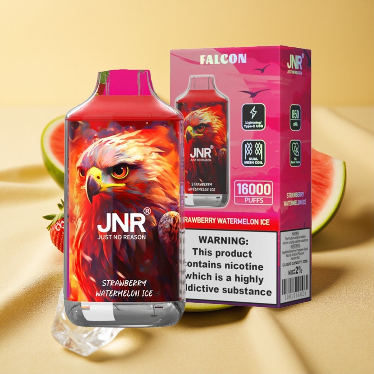 JNR Falcon 16000 Puffs Epe Strawberry Watermelon Ice Dual Mesh Coil Type C LED