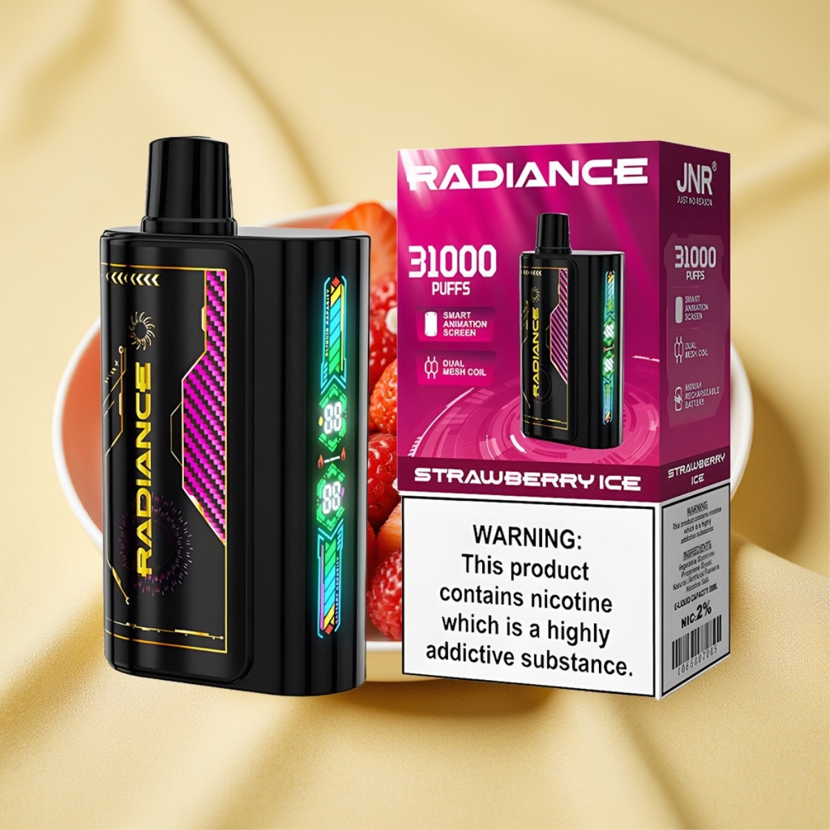 JNR Radiance 31000 Puff Epe E-liquid 28ml Erettségimeló Íz STRAWBERRY ICE